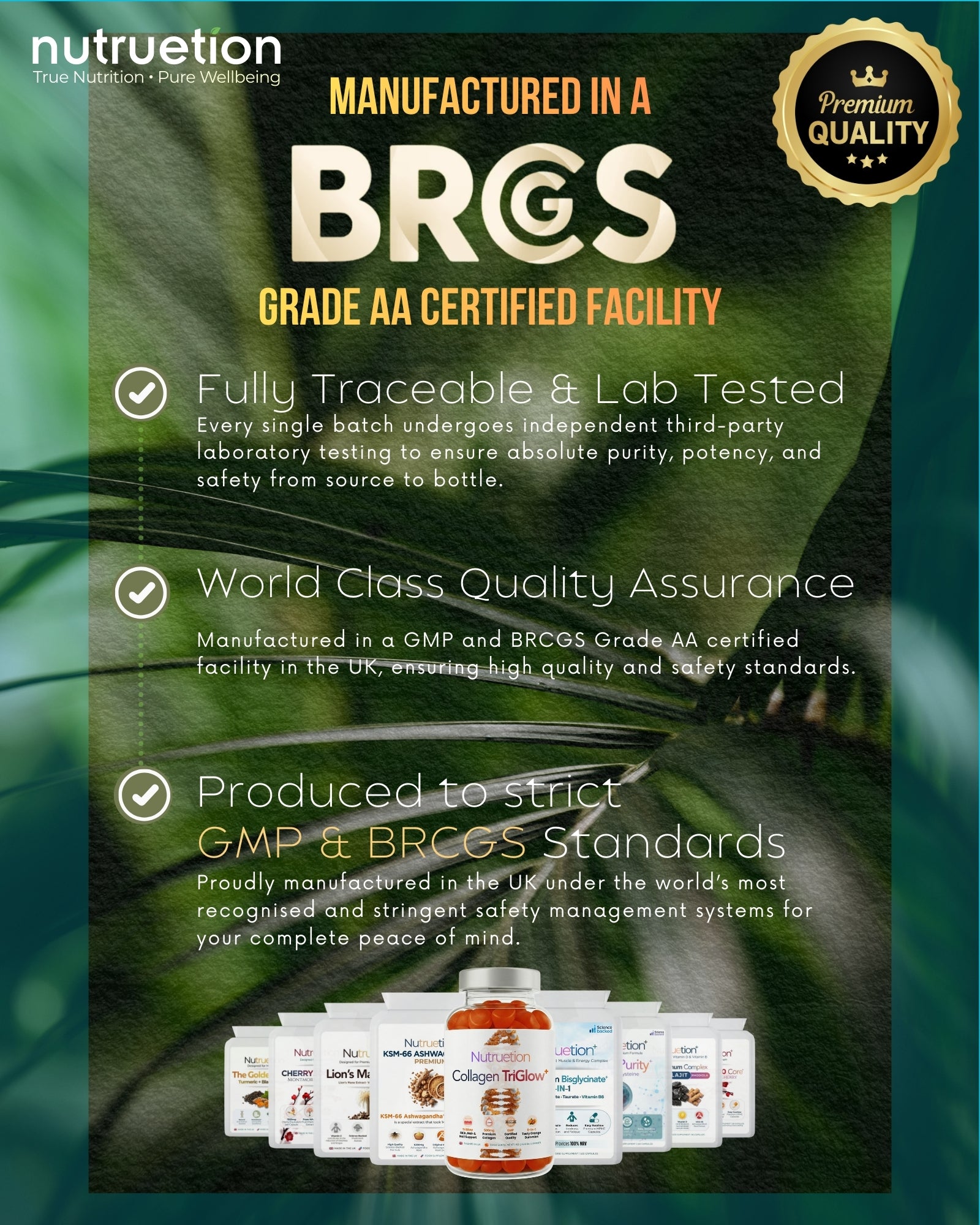 MANUFACTURED IN A BRCGS GRADE 'AA' FACILITY: Do not settle for less when it comes to your health. Unlike generic supplements, Nutruetion products are made in a UK facility awarded the prestigious BRCGS Grade AA certification. This ensures premium safety standards, full ingredient traceability, and rigorous third-party lab testing for purity you can trust.