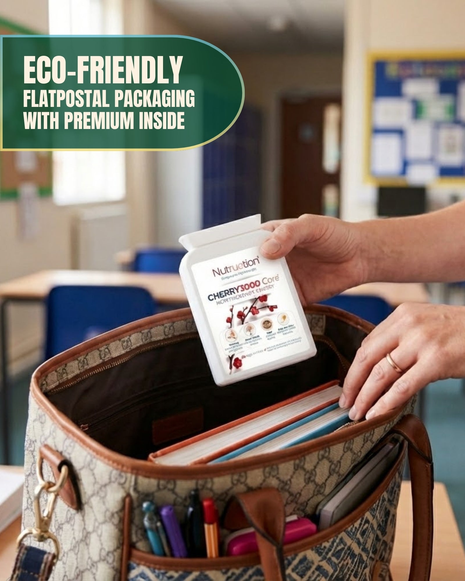 2. Maximum Potency 10:1 Extract: We do not settle for basic fruit powders. Our advanced formulation utilises a premium 10:1 extract ratio. A daily serving of just two capsules provides the equivalent of 3000mg of Montmorency Cherry, delivering a robust dosage in a convenient form.