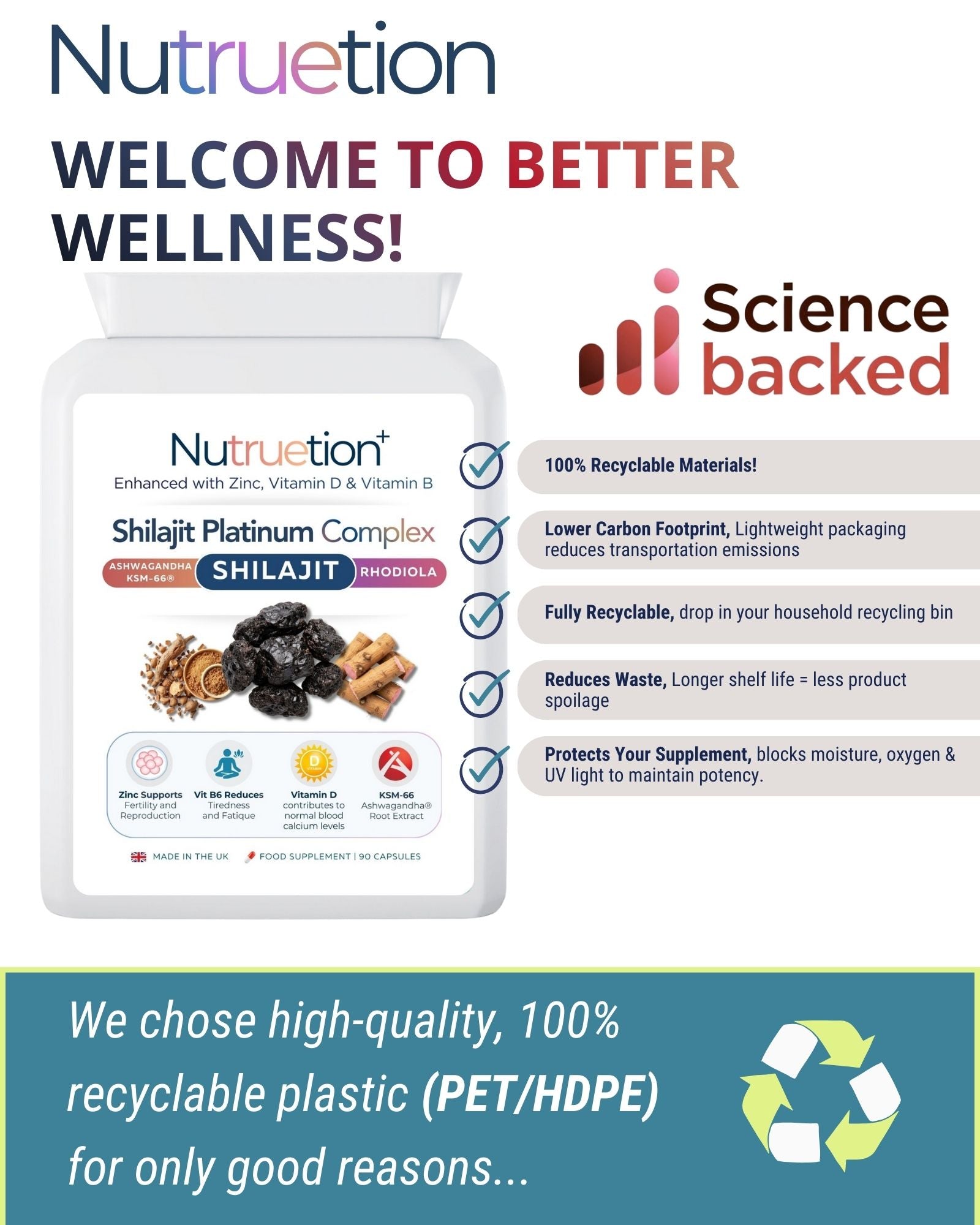 - Platinum Blend: With KSM-66, Rhodiola & Zinc.